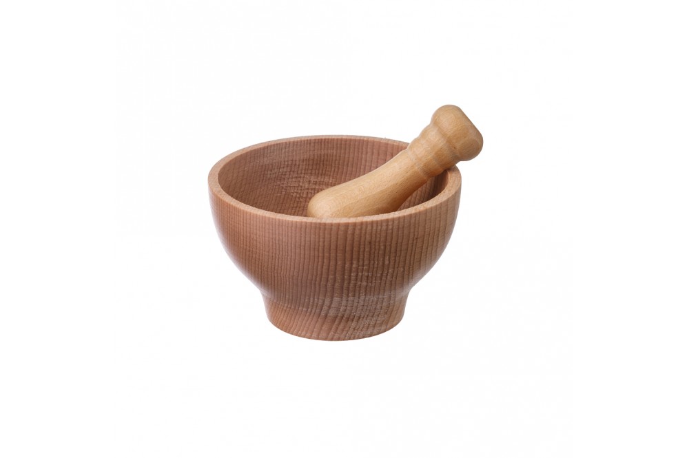 Hmoždíř vyrobený z bukového dřeva. Vhodný zejména k drcení bylinek, ořechů a dochucovacích směsí, které dokonale rozvinou svou chuť.