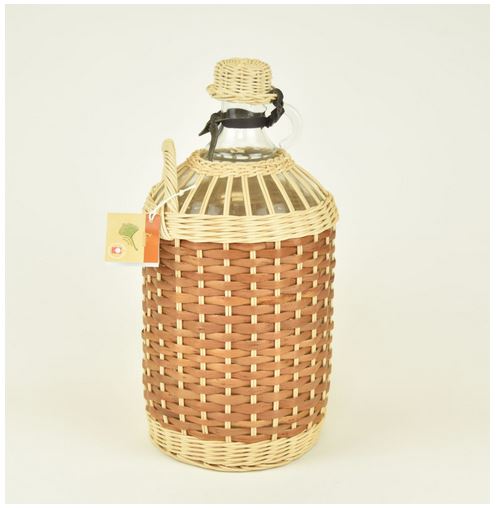 Demižon opletený pedigem. Výrobek byl vyroben v chráněné dílně.