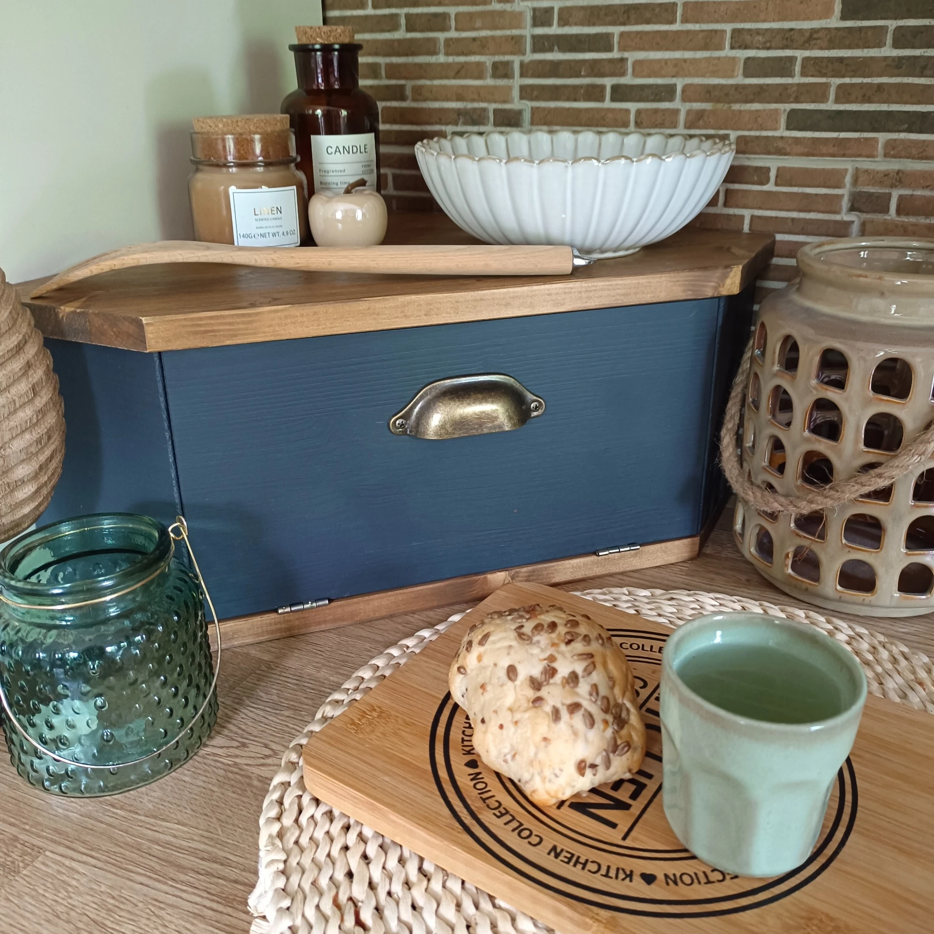 Moderní chlebník z masivního smrkového dřeva v kombinaci přírodního dřeva a antracitové barvy. Uvnitř je ponecháno surové dřevo. Uvnitř je ponecháno surové dřevo. Z venku ošetřen lakem pro styk s potravinami.